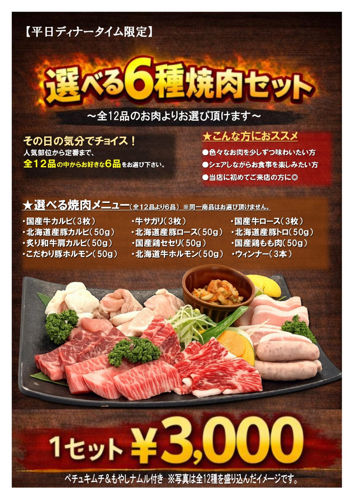平日ディナー限定焼肉セット2/2(月)より KIKUSUI 2026年2月1日 いつもご来店頂きありがとうございます。 肉の割烹田村菊水元町店では、2/2(月)より平日ディナー限定で 選べる6種焼肉セットを販売致します。 人気部位から定番部位迄全12種類のお肉から お好きな組み合わせ6種をお選び頂ける焼肉セットです。 少しずつシェアしたい方や、初めてご来店頂く方などに◎ 是非ご来店の際はお試し下さいませ。 ※大型連休期間など予告なく終了する場合がございます。